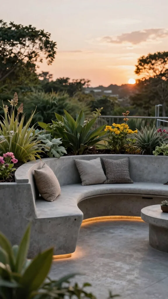 Cement planter benches create a stunning focal point while enriching your outdoor living experience.
