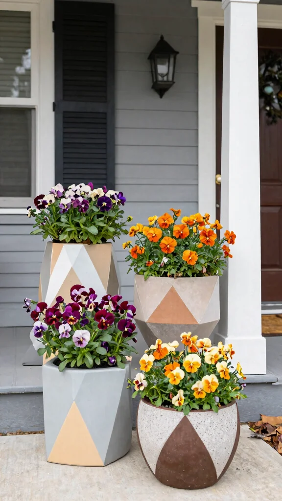 Color-blocked pots bring artistic flair to your seasonal decor, making your porch truly stand out.