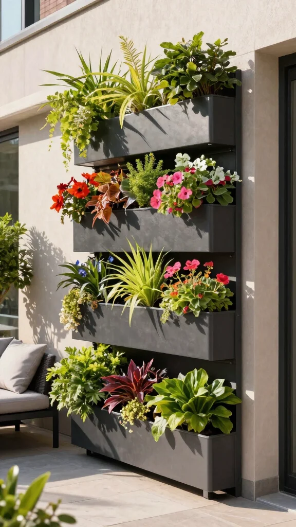 – Explore a variety of vertical wall planters to utilize vertical space effectively, making even the smallest patios feel expansive.